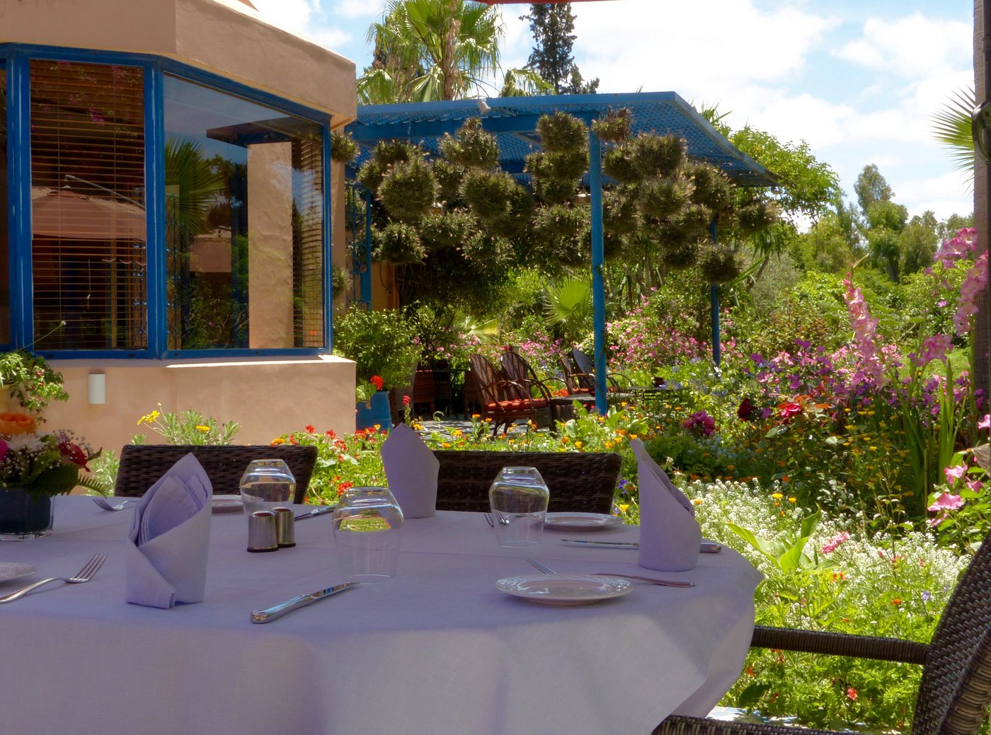 Deux espaces, deux ambiances s’offrent à vous : un intérieur non-fumeur, cosy et chaleureux, aux couleurs chatoyantes, ouvert sur le jardin grâce à de larges baies vitrées ; et une terrasse joliment aménagée, où vous pourrez profiter des couleurs et des senteurs des arbres fruitiers et des plantes qui l’entourent. Une expérience culinaire idéale pour un moment de détente et de plaisir à Rabat.